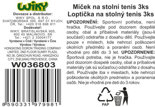 Loptička na stolný tenis. Balenie obsahuje 3 ks.