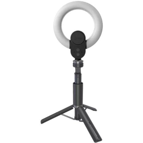 Ale podržte sa - jedná sa o kameru 2v1! Je vybavená kruhovým svetlom, vďaka ktorému bude každé miesto vyzerať ako štúdio. Jas a teplotu farieb je možné nastaviť pri prevádzke, rovnako ako orientáciu. Môžete ju použiť aj ako stolnú lampu – stačí len vyklopiť dopredu.