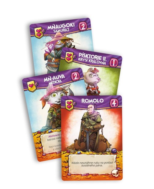 Obsah balenia: 36 žetónov mincí 40 žetónov životov 6 kociek 60 kariet lotrov 6 kariet pomocníkov 4 karty Rigora Mortisa 1 česká pravidla
