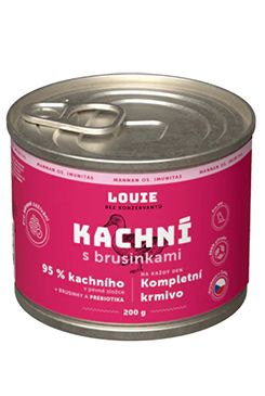 Šťavnatá konzerva obsahuje 95% kačacieho mäsa v pevnej zložke a 5% rastlinnej zložky, vitmamínov a minerálov. Obsiahnuté brusnice napomáhajú udržaniu zdravej močovej sústavy a podporujú peristaltiku čriev A po Louie zostane len vylízaná miska.