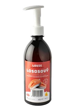 Doplnkové krmivo pre psy a mačky každého veku i plemena, lososový olej.