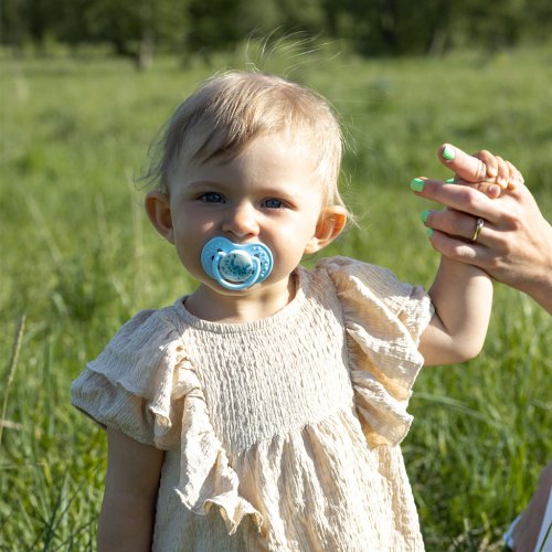 Tvar silikónovej špičky je prispôsobený prirodzenému saciemu reflexu, silikónová časť je úzka na začiatku pri štítku a rozšírená na konci tak, aby sa špička naťahovala a sťahovala podľa rytmu sania dieťaťa. Vďaka tomu je chránený sací reflex bábätiek a sanie cumlíka nemá nepriaznivý vplyv na dojčenie. Symetrický tvar špičky vychádza z tvaru mamičkinej bradavky naplnenej mliekom, ktorá poskytuje bábätku dôverne známy pocit podobný pocitu sania z prsníka. Špička je sploštená a koniec cumlíka je tak tenký, že umožňuje dieťaťu voľne zatvárať ústa a správne pracovať ďasnami pri saní a zároveň poskytuje dostatok priestoru v ústach pre prácu jazyka, čo znižuje riziko vzniku malooklúzie a chýb reči. Cumlík má svietiaci úchyt, ktorý vám umožní ho rýchlo nájsť v tme.