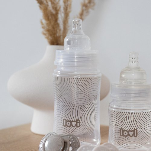 Fľaša LOVI Trends na kŕmenie detí odstriekaným mliekom od matky. Bezpečné pre dojčené dieťa, nenarúša sací reflex a nenarúša prirodzené kŕmenie . Je vybavená unikátnym cumlíkom dynamickým cumlíkom® s tenkým, vyčnievajúcim zakončením, tvrdou, profilovanou základňou a systémom odvodu vzduchu SUPERvent. Fľaša je kompatibilná so všetkými odsávačkami LOVI. LOVI Trends fľaša je potlačená jemným dizajnom v súlade s najnovšími trendmi.