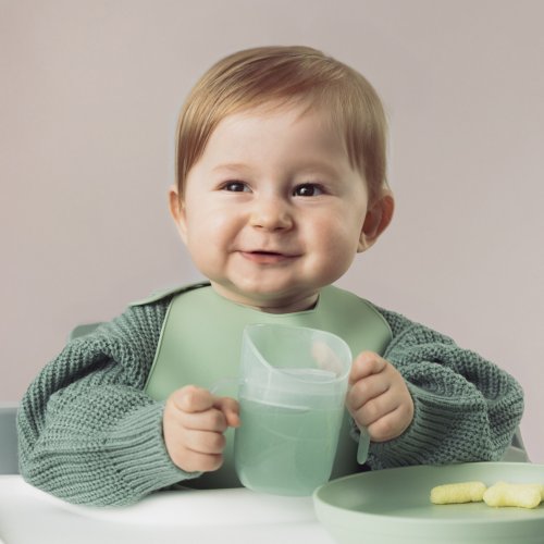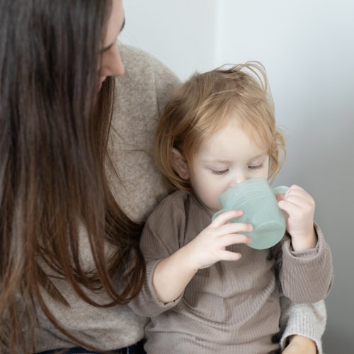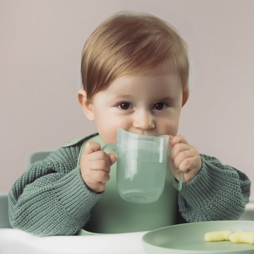 Prvý tréningový hrnček pre deti, ktoré sa učia samostatne piť.