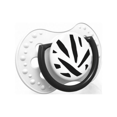 Je vyrobený z bezpečného materiálu, ktorý neobsahuje BPA. Jedinečný okraj štítku je vyrobený zo zdravotníckeho materiálu, je príjemný na dotyk a zabraňuje otlačeniu cumlíka. Otvory v štítku umožňujú cirkuláciu vzduchu, eliminujú hromadenie slín za štítkom a tým predchádzajú podráždeniu citlivej detskej pokožky. Krúžok v cumlíku pevne drží, uľahčuje držanie a podávanie cumlíka. Môžete naň pripnúť retiazku alebo šnúrku. Cumlík je z hygienických dôvodov opatrený plastovým krytom. Plastová krabička slúži ako puzdro na hygienické uchovávanie cumlíkov.