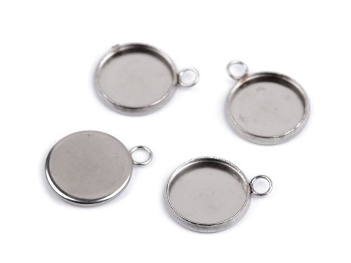 Kovové lôžko z kvalitnej nerezovej ocele môžete využiť podľa vlastnej fantázie. Je vhodné na vytvorenie šperku pomocou krištáľovej živice alebo sa do neho dá vlepiť kabošon. Hore má očko na zavesenie. Využijete ho na výrobu náhrdelníka, náušníc alebo aj ako prívesok na knižnú záložku, ku kľúčom a pod. Vonkajší priemer je 14 mm, vnútorný priemer lôžka je 12 mm. Hĺbka lôžka je 1,6 mm.