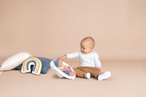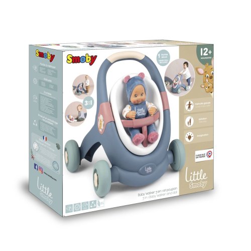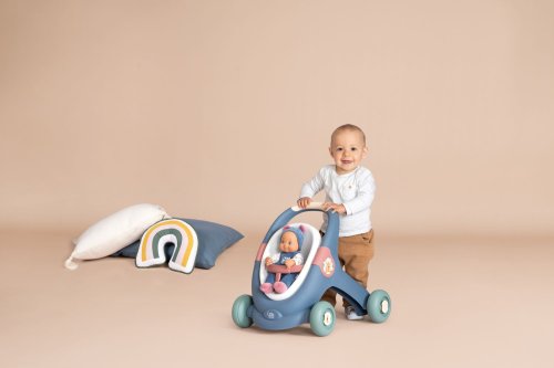Detské chodítko 3 v 1, použitie ako chodítko, kočík pre bábiku a sedátko pre bábiku. Súčasťou je bábika o veľkosti 30 cm.