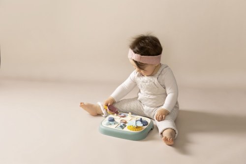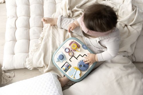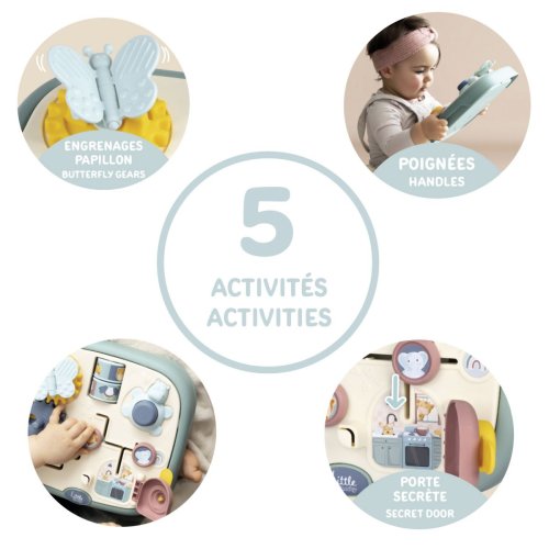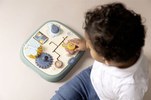 Motorická doska Little Smoby s 5 rôznymi a originálnymi aktivitami: labyrint, dvere so zámkom, ozubené kolesá, valčeky a tlačidlo. Rukoväte na strane poskytujú dieťaťu pevný úchop. Slúži na rozvíjanie motorických schopností dieťaťa. Rozmery výrobku (DxŠxV): 23,4 x 25,1 x 6,7 cm.