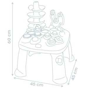 Všestranný hrací stôl Little Smoby Activity so svojimi početnými funkciami sľubuje vzrušujúce herné dobrodružstvo pre deti od 12 mesiacov. Táto interaktívna výuková hračka pozýva deti na objavovanie a skúmanie. Veľa farebných herných prvkov priťahuje pozornosť tých najmenších a trénuje motorické a sluchové zručnosti. V hre na rozpoznávanie tvarov sa stavebné kamene zasúvajú do príslušných otvorov. Malá guličková dráha s rampou vás pozýva k hre a skúšaniu. Rozmery produktu (DxŠxV): 45 x 45 x 60 cm.