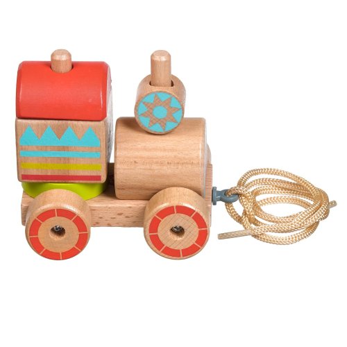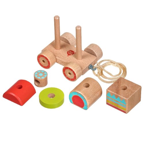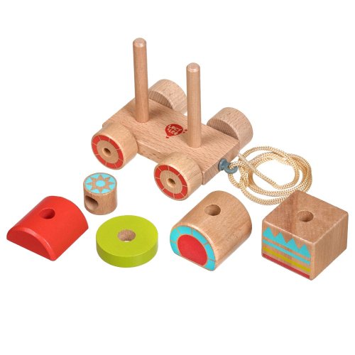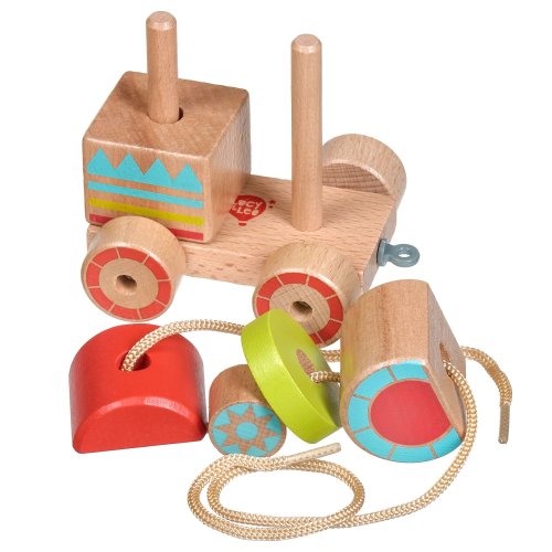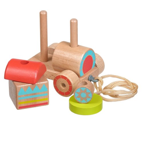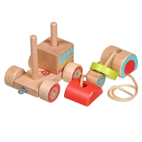 Drevená ťahacia mašinka je drevená skladačka so 6 farebnými dielmi, ktoré treba poskladať tak, aby mašinka mohla vyraziť na cesty. Praktický povrázok umožňuje hračku ťahať a vziať so sebou kamkoľvek. Táto vzdelávacia hračka má pozitívny vplyv na logické myslenie, obratnosť a pohybové zručnosti dieťaťa. Výška zloženého vlaku 9 cm, dĺžka 11 cm, rozmery dielikov vlaku cca 4,5 x 4 cm. Dĺžka povrázka 45 cm.
