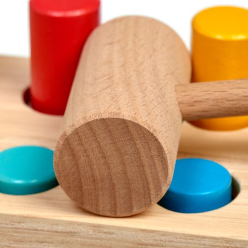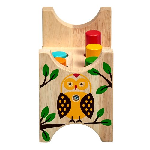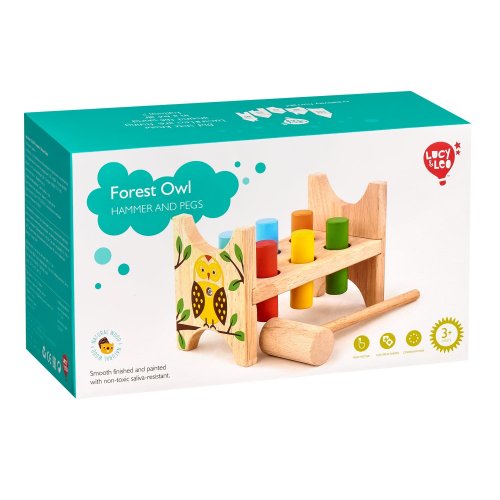 Lesná sova je klasická drevená zatĺkačka s farebným veselým obrázkom pre chlapcov aj dievčatá. Má drevenú dosku so šiestimi otvormi a kladivko, ktoré slúžia na nácvik zatĺkania 6tich farebných kolíkov. Po zatlčení všetkých kolíkov sa stojan otočí a môže sa začať opäť zatĺkať. Hračka slúži na rozvoj jemnej motoriky, koncentrácie a predovšetkým koordináciu pohybu. Rozmery stojanu 13,8 x 8,5 x 9,3 cm.