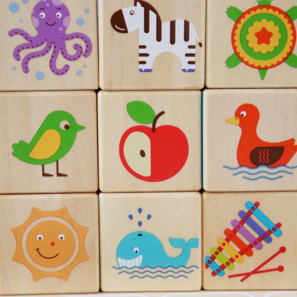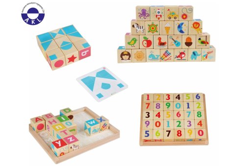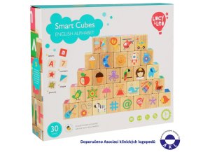 Chytré kocky je multifunkčný vzdelávací set, ktorý obsahuje sadu 30 kociek, rámčekom ohranenú vzdelávaciu podložku s abecedou a 15 obojstranných kariet so špeciálnymi grafickými predlohami. Na kockách nájdeme písmená, obrázky súvisiace s týmito písmenami pre výučbu angličtiny, číslice, a špeciálne tvary na poskladanie rôznych obrazcov podľa priložených kariet. Táto úžasná edukatívna sada kociek s dieťaťom doslova rastie niekoľko rokov. Malé deti využijú kocky ako klasickú hračku, obľúbenú deťmi po mnoho generácií, určenú na skladanie a poznávanie zvieratiek a rôznych vecí zo svojho okolia. Deti predškolského veku sa tu môžu zoznámiť so základnými číslicami a písmenami. Vďaka podložke s abecedou ich môžu priraďovať na príslušné miesto a naučiť sa tak ich postupnosť v abecede. Tieto kocky sú však ideálnym pomocníkom predovšetkým pri výučbe angličtiny, pretože každé znázornené písmenko na jednej strane kocky má na inej strane kocky aj svoj obrázok, ktorý týmto písmenkom v angličtine začína. Ako bonus navyše sú tu priložené karty s grafickými predlohami, podľa ktorých sa dajú kocky poskladať do rôznych obrazcov pripomínajúcich tangram. Kocky sú vyrobené z kvalitného dreva s hladkou povrchovou úpravou a natreté ekologickými farbami odolnými proti slinám.