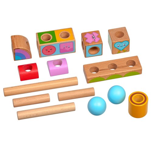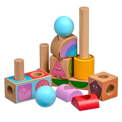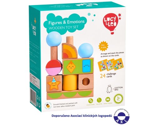 Tvary a emócie je drevená skladačka s rôznymi geometrickými tvarmi. Súčasťou je základňa s okrúhlymi kolíkmi, rôzne geometrické farebné tvary s motívmi emócií a 24 predlôh. Cieľom hry je vyskúšať rôzne usporiadania a umiestniť všetky tvary na kolíky podľa predlôh. Po skončení hry je možné skladačku umiestniť do ľanového vrecka. Skladačka je skvelá pre rozvoj logického myslenia, jemnej motoriky a detskej predstavivosti.