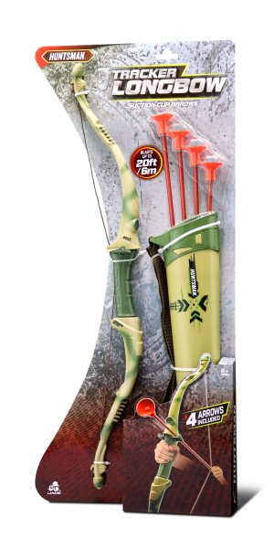 Zahraj si na lovca s lukom a šípmi. Balenie obsahuje 4 šípy s prísavkami a túlec s popruhom. Tetiva z pleteného povrázku. Ramená luku sú pružné. Dostrel až 6 metrov. Dĺžka luku: 61cm.