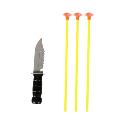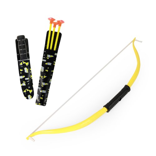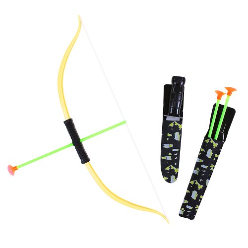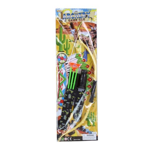 Natiahni, zamier a strieľaj! Táto lovecká sada obsahuje úchvatný lúk, 3 farebné šípy s prísavkami v obale a nôž. Všetko je vyrobené z plastu. Tetiva je nutné skrátiť tak, aby bola dostatočne napnutá.