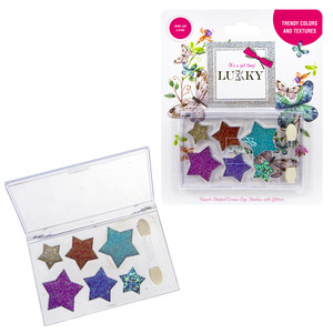 Krémové očné tiene Lukky s trblietkami a štetčekom v 6 rôznych odtieňoch.
