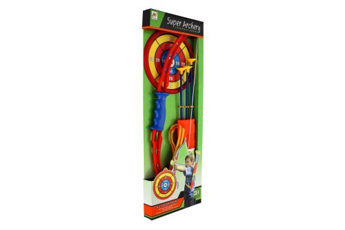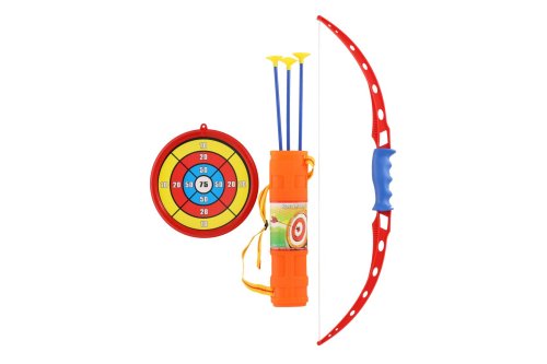 Plastový set s lukom, šípmi a terčom určený pre malých strelcov, ktorí strieľajú so šípmi zakončenými prísavkou na pripravený terč. Streľba je tak pre deti bezpečná. Po ukončení strieľania je možné šípy zložiť do potulky, ktorý má nastaviteľný popruh pre ľahké prenášanie. Vhodné od 3 rokov.