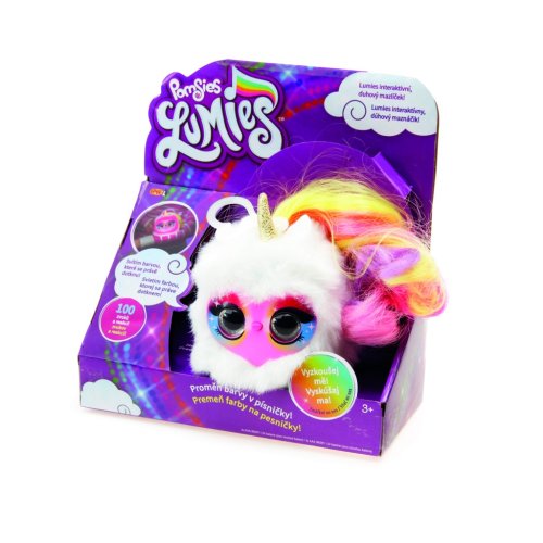 Lumies má 100 rôznych zvukov a reakcií. Stlač mu nos a uži si 4 zábavné herné režimy. Polož Lumies na svoju obľúbenú farbu a on ju rozozná. Rozsvieti sa rovnakou farbou. Lumies jednoducho farby miluje. Mení farby, hovorí o farbách. Alebo môžeš meniť jeho farby na melódie. Navyše má krásne dúhové vlásky, ktoré môžeš učesať priloženým hrebienkom. Vyžaduje 3x AAA batérie, sú súčasťou balenia. Balenie obsahuje Lumies a hrebienok.
