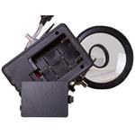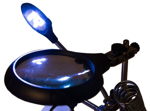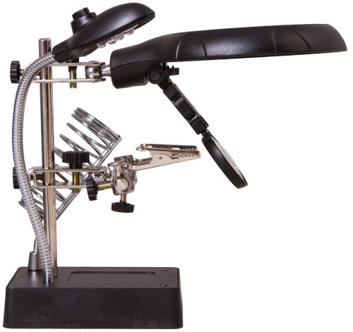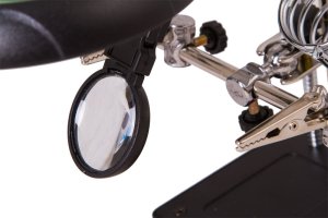 Základňa na stole nezaberie veľa miesta a pritom skrýva všetko potrebné vybavenie. Stabilná konštrukcia zabraňuje prevráteniu. Používajte ju na opravu drobných technických položiek a na jemnú detailnú prácu. Osvetlenie na ohybnom krku umožňuje nasmerovať svetlo presne na požadovanú oblasť.