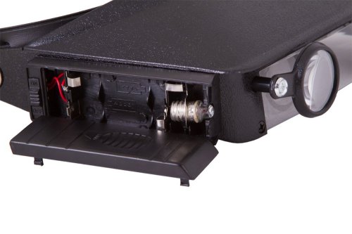 Lupa sa veľmi ľahko upevňuje k hlave pomocou pružnej čelenky so suchým zipsom. Pre väčšie pohodlie je lupa vybavená LED osvetlením – dva jasné svetelné zdroje na báze technológie LED sa nachádzajú po stranách šošovky. Intenzita svetla je dostatočná aj na prácu v úplnej tme.