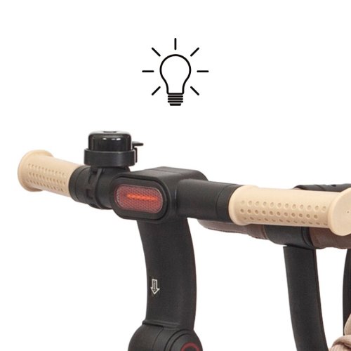 Twinkle je vybavená nastaviteľnou rukoväťou, funkciou voľnobehu, brzdou, bezpečnostnými pásmi s chráničmi a pohodlným trojpolohovým operadlom a zaručuje úplnú kontrolu a pohodlie pre dieťa aj rodičov. Jej ľahký, ale odolný oceľový rám, kolesá s penovou výplňou a guličkovými ložiskami, skladacia konštrukcia a praktické prvky, ako je sieťovaná strieška, LED svetlo, držiak na nápoje a dva úložné boxy, z nej robí perfektnú voľbu pre každú príležitosť - v meste, na prechádzke alebo na výlete. Po odstránení rukoväte, koľajníc a striešky je možné Twinkle používať ako klasickú trojkolku.