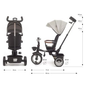 Twinkle je vybavená nastaviteľnou rukoväťou, funkciou voľnobehu, brzdou, bezpečnostnými pásmi s chráničmi a pohodlným trojpolohovým operadlom a zaručuje úplnú kontrolu a pohodlie pre dieťa aj rodičov. Jej ľahký, ale odolný oceľový rám, kolesá s penovou výplňou a guličkovými ložiskami, skladacia konštrukcia a praktické prvky, ako je sieťovaná strieška, LED svetlo, držiak na nápoje a dva úložné boxy, z nej robí perfektnú voľbu pre každú príležitosť - v meste, na prechádzke alebo na výlete. Po odstránení rukoväte, koľajníc a striešky je možné Twinkle používať ako klasickú trojkolku.