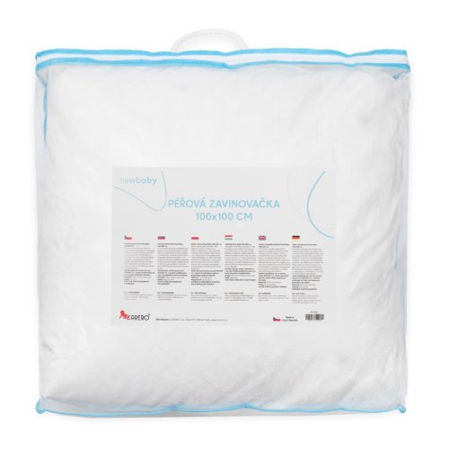 Luxusná páperová zavinovačka Dráčik 100x100 cm českej značky New Baby je synonymom komfortu v spaní. Perová zavinovačka poskytuje bábätku mäkkučký pocit, teplo a pocit bezpečia ako v brušku. Pomáha tak bábätku adaptovať sa na nové podmienky. Vďaka vynikajúcim vlastnostiam peria zaisťuje zavinovačka bábätku stabilnú teplotu. Perie absorbuje vlhkosť a odvádza ju od ľudského tela počas spánku. Špeciálne čistené, testované perie. Naše perinky obsahujú 80 percent draného husacieho peria a 20 prachové perie výplne (0,6 kg). Zasielame v praktickej taške na zips, ktorú využijete aj na uskladnenie akýchkoľvek vecí vo vás doma.