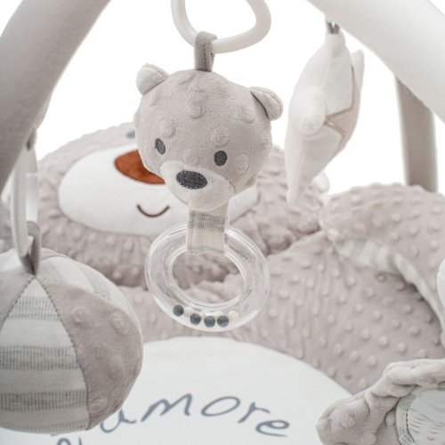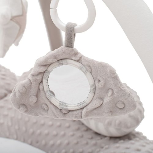 Podložka má hrazdičku s odnímateľnými hračkami, ktoré je možné ľubovoľne premiestňovať alebo používať samostatne. Každé bábätko si nájde niečo zaujímavé – zrkadlo, šuštiace prvky, pískatko, mäkké hryzátko, zvonček aj hračku so vstavaným prehrávačom, ktorá po stlačení prehrá príjemnú melódiu.