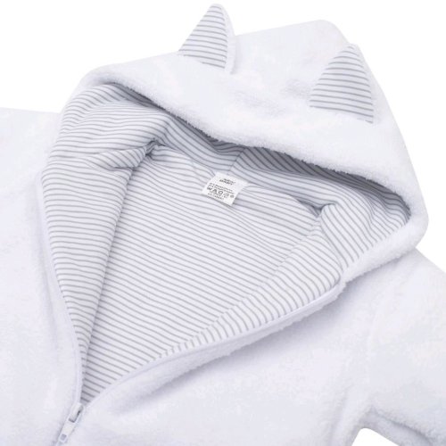 Luxusný zimný kabátik s kapucňou New Baby Snowy collection pre bábätká. Krásny, hrejivý, originálny a zároveň praktický. Je vyrobený z hrejivého materiálu tzv. Wellsoftu. Kabátik je zateplený antialergickým vláknom a podšitý bavlnenou podšívkou, ktorá je celopotlačená modernými pruhmi. Zapínanie po celej dĺžke na zips uľahčí obliekanie. Rukávky je možné vyhrnúť a tým vynikne pruhovaná podšívka. Materiál: 100% polyester-wellsoft, podšívka 100% bavlna, výplň - antialergické vlákno.