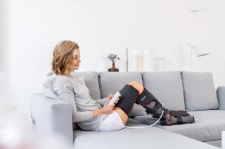 Lymfatická masáž nôh BEURER FM150Pro kompresný s manžetami na stehná