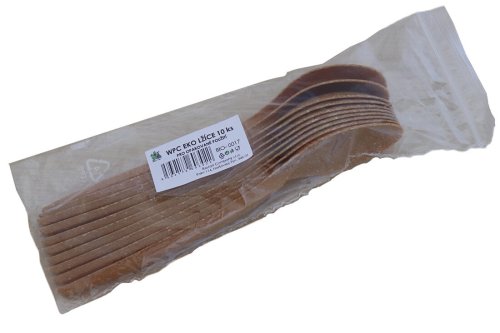 Ekologické kompozitné príbory vyrobené z WPC materiálu (drevo/plast) sú vhodné na jednorazové aj opakované použitie. WPC materiál je veľmi odolný voči vysokým teplotám (do 100 ° C). Príbory je možné opakovane umývať v umývačkách. Inovatívna veľmi odolná a pevná lyžica je vyrobená z WPC materiálu, ktorý kombinuje najlepšie vlastnosti dreva a plastových polymérov. Lyžica je opakovane použiteľná, 100% recyklovateľná, odolná vysokým teplotám, vode aj mastnote.