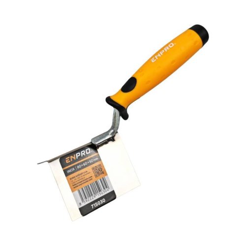 lyžica nerez - rohová ENPRO lyžica vyrobená z kvalitnej nerezovej ocele hr. 1mm gumová ergonomická rukoväť používa sa najmä na úpravu a začistenie vonkajších rohov a na dokončovacie práce v stavebníctve
