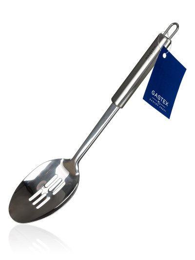 Lyžica s otvormi AZORA, vyrobená z nehrdzavejúcej ocele, je určená na profesionálne aj domáce použitie. Lyžica je opatrená praktickým očkom pre možnosť zavesenia, ľahko sa udržuje, možno umývať v umývačke riadu. Rad kuchynského náčinia GASTEX spĺňa náročné požiadavky profesionálov a je vhodný aj na domáce použitie. Jednoduchý funkčný dizajn zabezpečuje nadčasovosť a dlhú morálnu i kvalitatívnu životnosť všetkých výrobkov.