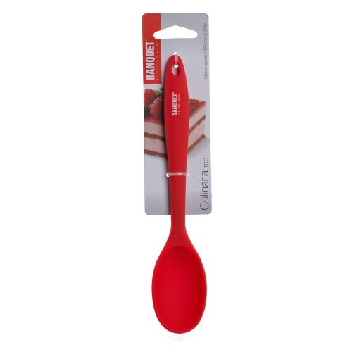 Silikónová lyžička 20,8 cm CULINARIA Red je praktický pomocník so širokým využitím v kuchyni pri varení, zarábaní ciest, miešaní krémov, omáčok, atď. Náčinie zo silikónového materiálu je ideálne pri používaní riadu s nepriľnavým povrchom. Pevnosť lyžičky zaisťuje vo vnútri silikónového materiálu kovová výstuha. Silikón je veľmi populárny materiál, ktorý pre svoje jedinečné vlastnosti našiel svoje uplatnenie aj v kuchyni. Vyrábajú sa z neho rôzne druhy foriem na pečenie, vály a valčeky na cesto, stierky, mašlovačky, rôzne druhy kuchynského náčinia a mnohé ďalšie výrobky. Silikón je odolný vysokým teplotám (do 230 st. C).