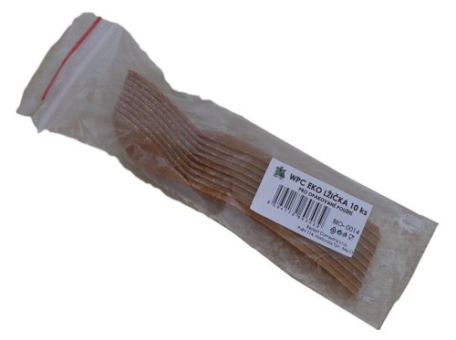 Ekologické kompozitné príbory vyrobené z WPC materiálu (drevo/plast) sú vhodné na jednorazové aj opakované použitie. WPC materiál je veľmi odolný voči vysokým teplotám (do 100 ° C). Príbory je možné opakovane umývať v umývačkách. Inovatívna veľmi odolná a pevná lyžička je vyrobená z WPC materiálu, ktorý kombinuje najlepšie vlastnosti dreva a plastových polymérov. Lyžička je opakovane použiteľná, 100% recyklovateľná, odolná vysokým teplotám, vode aj mastnote.