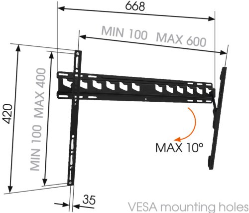 Spoľahlivý držiak na LCD s maximálnym pomerom výkon/cena Hlavné vlastnosti: - odporúčaná uhlopriečka 40-80" - nosnosť 60 kg - nastaviteľný náklon 0-10 ° - vzdialenosť TV od steny v polohe pri stene 35 mm - …