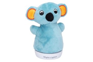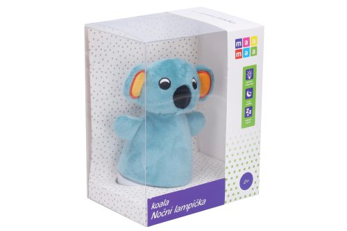 Maamaa Lampička nočná koala zaspávačik plyšový. Rozmery 11x8x15,5 cm. Aktivácia prepínačom na spodnej strane lampičky. Automaticky sa meniace farebné svetielko (7 farieb). 3xAAA batérie, nie sú súčasťou.