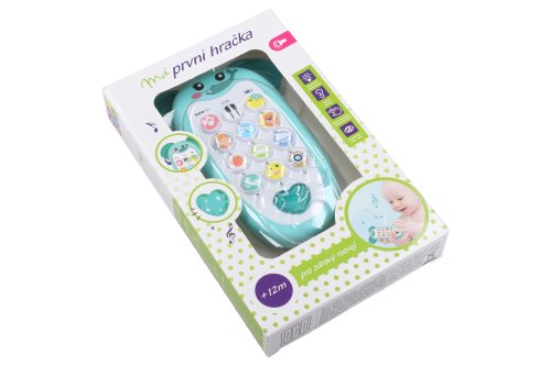 Telefón detský slon. Veľkosť 13,5 cm. Vydáva svetelné a zvukové efekty. Efekty sa aktivujú tlačidlami. 3xAAA batérie (nie sú súčasťou).