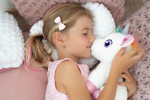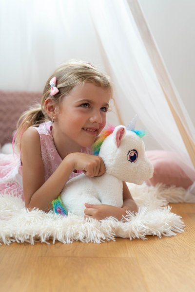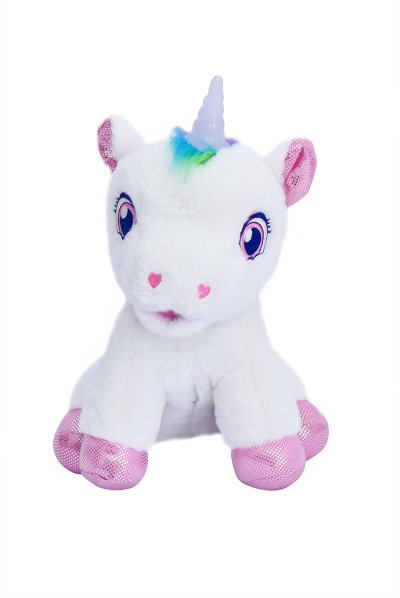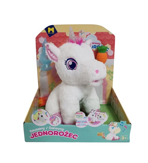 Interaktívny jednorožec, ktorý vydáva roztomilé zvuky, pri pohladení po chrbte chrlí paru z pusinky a spokojne vrní a svieti mu roh rôznymi farbami, ktoré sa menia.
