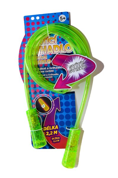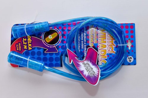 Svietiace švihadlo, ktoré pri skákaní svieti a bliká rôznymi farbami. Dĺžka švihadla 2,2 m.