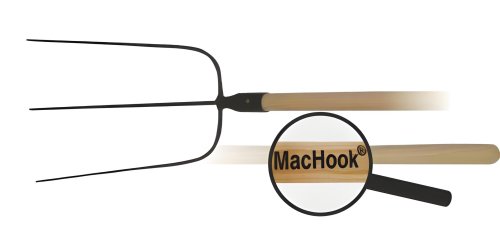 Vidle s 3 hrotmi s drevenou násadou vhodné na seno.