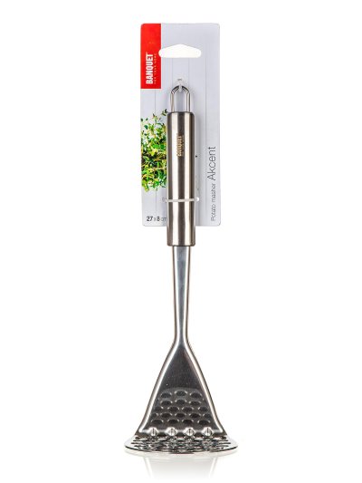 Šťuchadlo na zemiaky AKCENT, vyrobené z nerezovej ocele, je určené pre profesionálne aj domáce použitie Šťuchadlo je vybavené praktickým očkom pre možnosť zavesenia, ľahko sa udržuje a je možné umývať v umývačke riadu. kvalitatívna životnosť všetkých výrobkov.