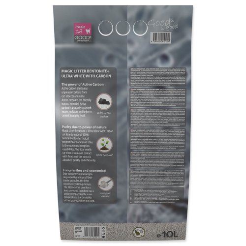 Stelivo pre mačky superprémiovej kvality s aktívnym uhlím . Je vyrobené z vysoko kvalitného, jemnozrnného bentonitu, teda má vynikajúce absorpčné schopnosti .