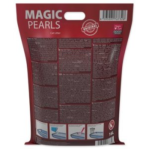 Neparfumované silikátové podstielka pre mačky. Vďaka mikropórom na seba stelivo veľmi rýchlo viaže tekutiny, ktoré uzamkne vo vnútri kryštálov a eliminuje nepríjemný zápach . Tým zároveň zabraňuje množeniu nebezpečných baktérií. Vďaka tomuto inovatívnemu procesu má podstielka Magic Pearls extrémnu savosť a udržuje toaletu suchú a čistú . Stelivo Magic Pearls je bezprašné a nelepí sa na labkách a srsti zvierat, takže nie je mačkami vynášané mimo toalety. Stelivo je vhodné aj pre dlhosrsté plemená mačiek. Stelivo Magic Pearls v toalete vydrží absorbovať pachy a vlhkosť až 4 týždne (pri použití jednou mačkou), preto je jeho použitie taktiež veľmi ekonomické, nie je potrebné ho meniť tak často ako iné druhy podstielok.