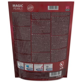 Neparfumované silikátové podstielka pre mačky. Vďaka mikropórom na seba stelivo veľmi rýchlo viaže tekutiny, ktoré uzamkne vo vnútri kryštálov a eliminuje nepríjemný zápach . Tým zároveň zabraňuje množeniu nebezpečných baktérií. Vďaka tomuto inovatívnemu procesu má podstielka Magic Pearls extrémnu savosť a udržuje toaletu suchú a čistú . Stelivo Magic Pearls je bezprašné a nelepí sa na labkách a srsti zvierat, takže nie je mačkami vynášané mimo toalety. Stelivo je vhodné aj pre dlhosrsté plemená mačiek. Stelivo Magic Pearls v toalete vydrží absorbovať pachy a vlhkosť až 4 týždne (pri použití jednou mačkou), preto je jeho použitie taktiež veľmi ekonomické, nie je potrebné ho meniť tak často ako iné druhy podstielok.