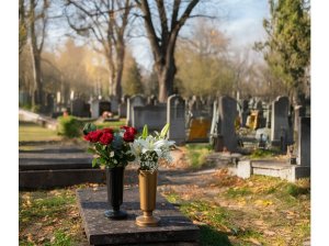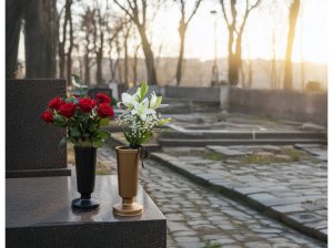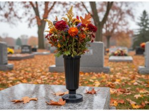 Plastová cintorínska váza so záťažou pre bezpečné a stabilné umiestnenie kvetov na hrobe.