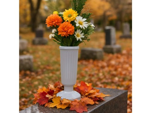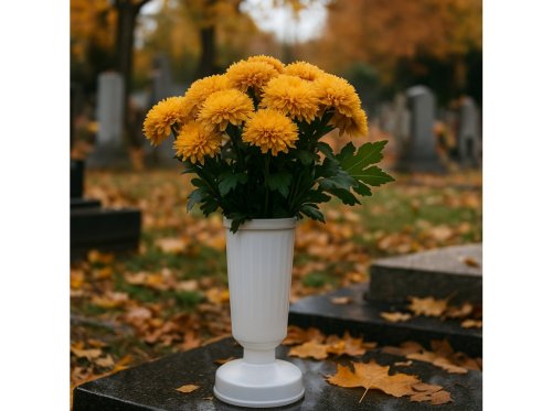 Plastová cintorínska váza so záťažou pre bezpečné a stabilné umiestnenie kvetov na hrobe.