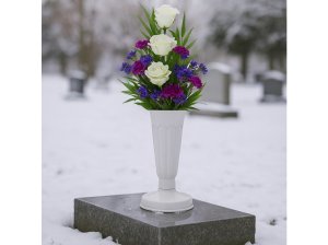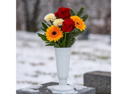 Plastová cintorínska váza so záťažou pre bezpečné a stabilné umiestnenie kvetov na hrobe.