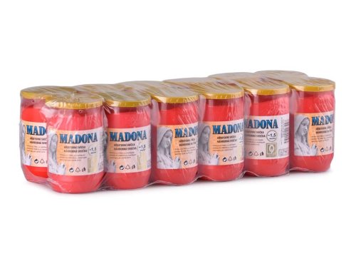 Olejová sviečka Madona v červenej farbe, vhodná na cintorínske účely. Horí až 1,5 dňa.
