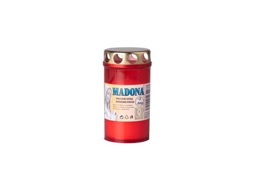 Sviečka Madona s viečkom v červenej farbe, horí až 2 dni.